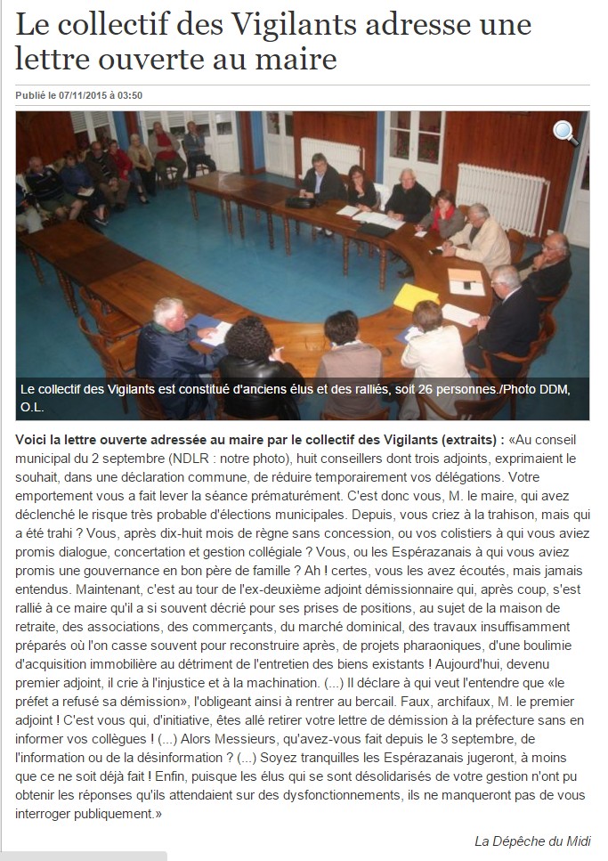 02-09-2015-Déclaration du 1er Adjoint lors du Conseil Municipal.